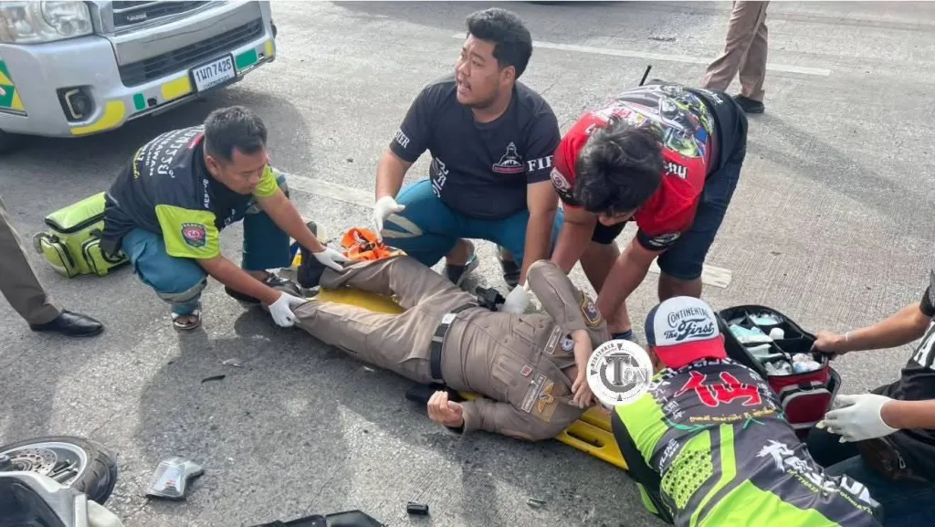 หวิดดับ ด.ต.ควบ จยย.คุมรถผู้ต้องขังพบอุบัติเหตุเบครไม่ทันพุ่งชนท้ายรถเรือนจำที่คุมมาได้รับบาดเจ็บ