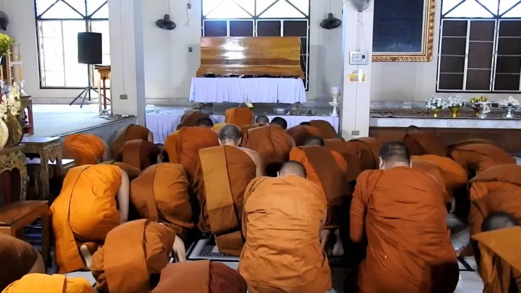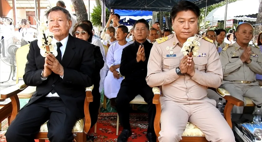 พิธีเริ่มต้นขึ้นในเวลา 15.00 น. โดยพระเดชพระคุณพระเทพวชิราธิบดี เจ้าคณะภาค 6–7 (ธรรมยุต) เป็นประธานพิจารณาผ้าไตรบังสุกุล และพระครูวิมลธรรมรัต (ศรีนวล วิมโล) แสดงธรรมบนธรรมาสน์ ท่ามกลางบรรยากาศสงบ สำรวม และเต็มไปด้วยความอาลัยของศรัทธามหาชน ภายในพิธีมีแขกผู้มีเกียรติร่วมงาน อาทิ พลตำรวจตรี วิชัย เชี่ยวเวทย์ อดีตผู้บังคับการตำรวจภูธรจังหวัดลำพูน ประกอบพิธีจุดเทียนธูปบูชาพระรัตนตรัย และนายคมสันต์ ขวัญวงศ์ นายกเทศมนตรีตำบลเกาะคา จุดเทียนส่องธรรมอาราธนาธรรม พร้อมทั้งมีสาธุชนร่วมทอดผ้าบังสุกุลตามลำดับอย่างพร้อมเพรียง