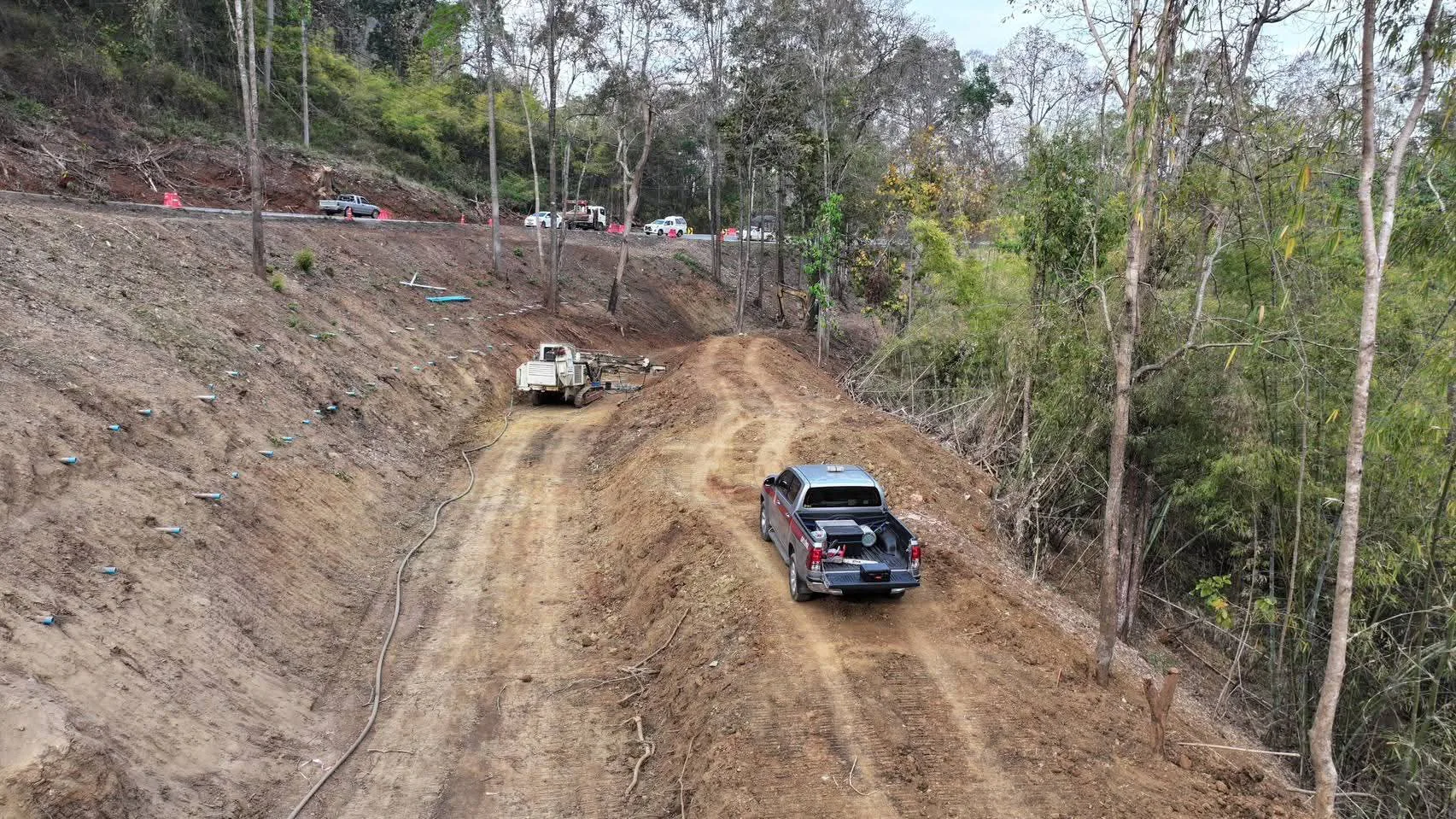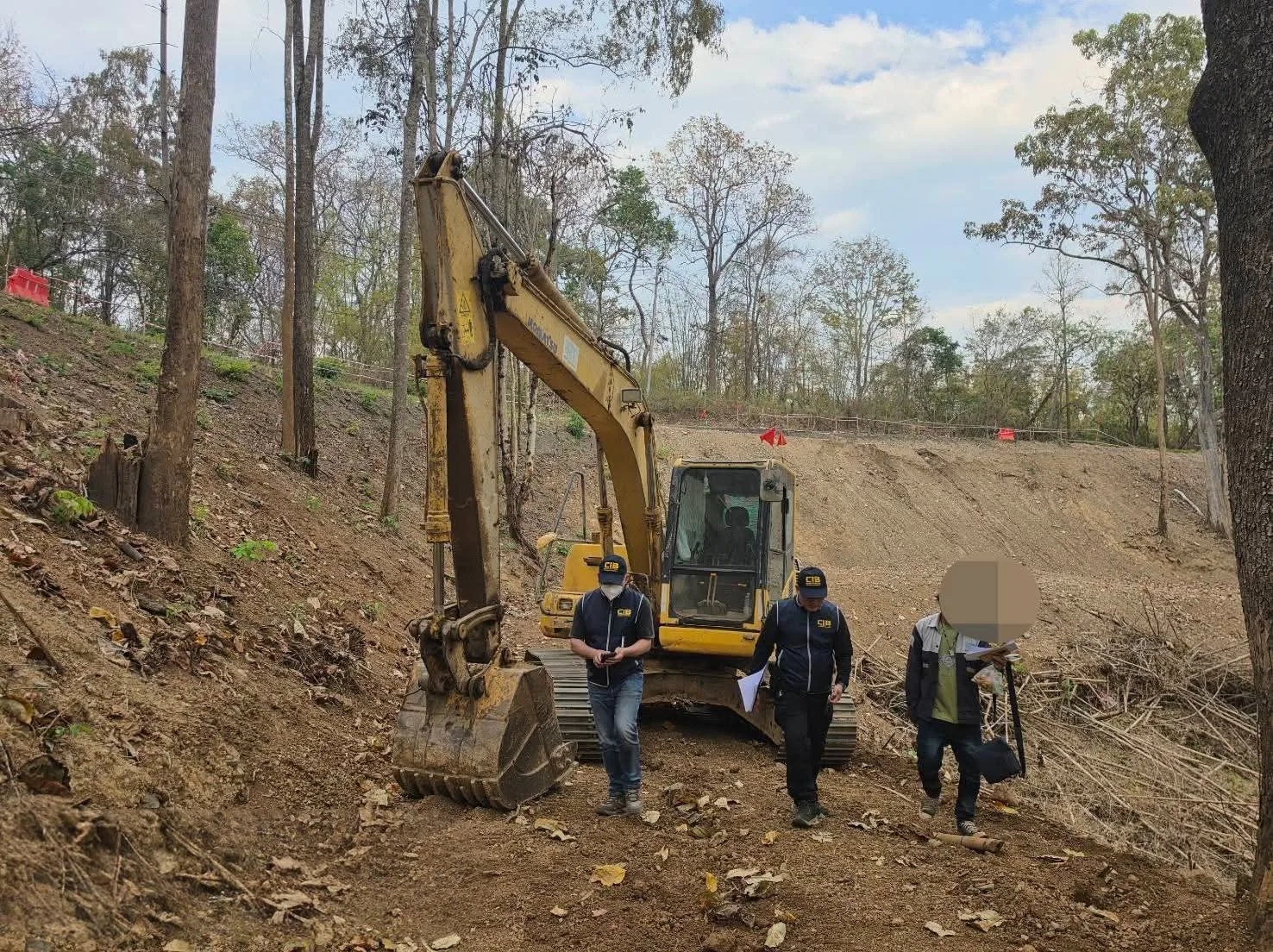 ซึ่งก่อนหน้านี้เจ้าหน้าที่ได้รับแจ้งเบาะแสว่ามีการใช้เครื่องจักรหนักบุกเบิกป่าและตัดไม้หวงห้ามสองข้างทางหลวง เมื่อเข้าตรวจสอบพบ นายชัย นามสมมุติ อายุ 50 ปี กำลังขับรถแบคโฮลปฏิบัติงานอยู่ในเขตป่า จากการสอบสวนเบื้องต้น นายชัยฯ รับสารภาพว่าตนเป็นลูกจ้างของ บริษัท แห่งหนึ่ง ซึ่งเป็นผู้รับจ้างโครงการฟื้นฟูทางหลวงของแขวงการทางเชียงใหม่ที่ 3 กรมทางหลวง โดยอ้างว่าทำตามคำสั่งนายจ้างให้ตัดโค่นต้นไม้เพื่อขยายผิวจราจร เจ้าหน้าที่จึงยึดของกลาง 1. รถแบคโฮล 1 คัน , เลื่อยโซ่ยนต์ 1 เครื่อง (ไม่มีใบอนุญาตครอบครอง) และ ตอไม้หวงห้าม 17 ตอ และไม้ท่อนอีกจำนวนมากที่ถูกตัดทอนกองรวมกันไว้ นอกจากนี้ยังพื้นที่ป่าที่ถูกบุกรุก ในเขตอุทยานแห่งชาติศรีลานนา เนื้อที่ประมาณ 0 ไร่ 2 งาน 32 ตารางวา