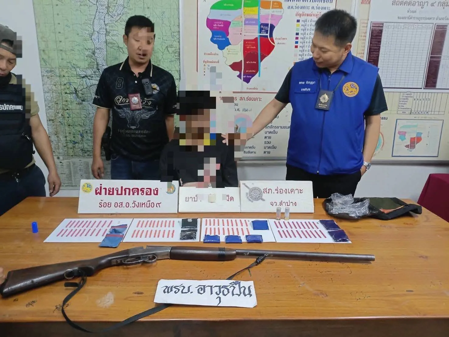 ลำปาง – “5 เสือเมืองวัง” รุกฆาต! บุกกวาดล้างยาเสพติด Quick Big Win รวบผู้ต้องหาพร้อมยาบ้า-อาวุธปืน