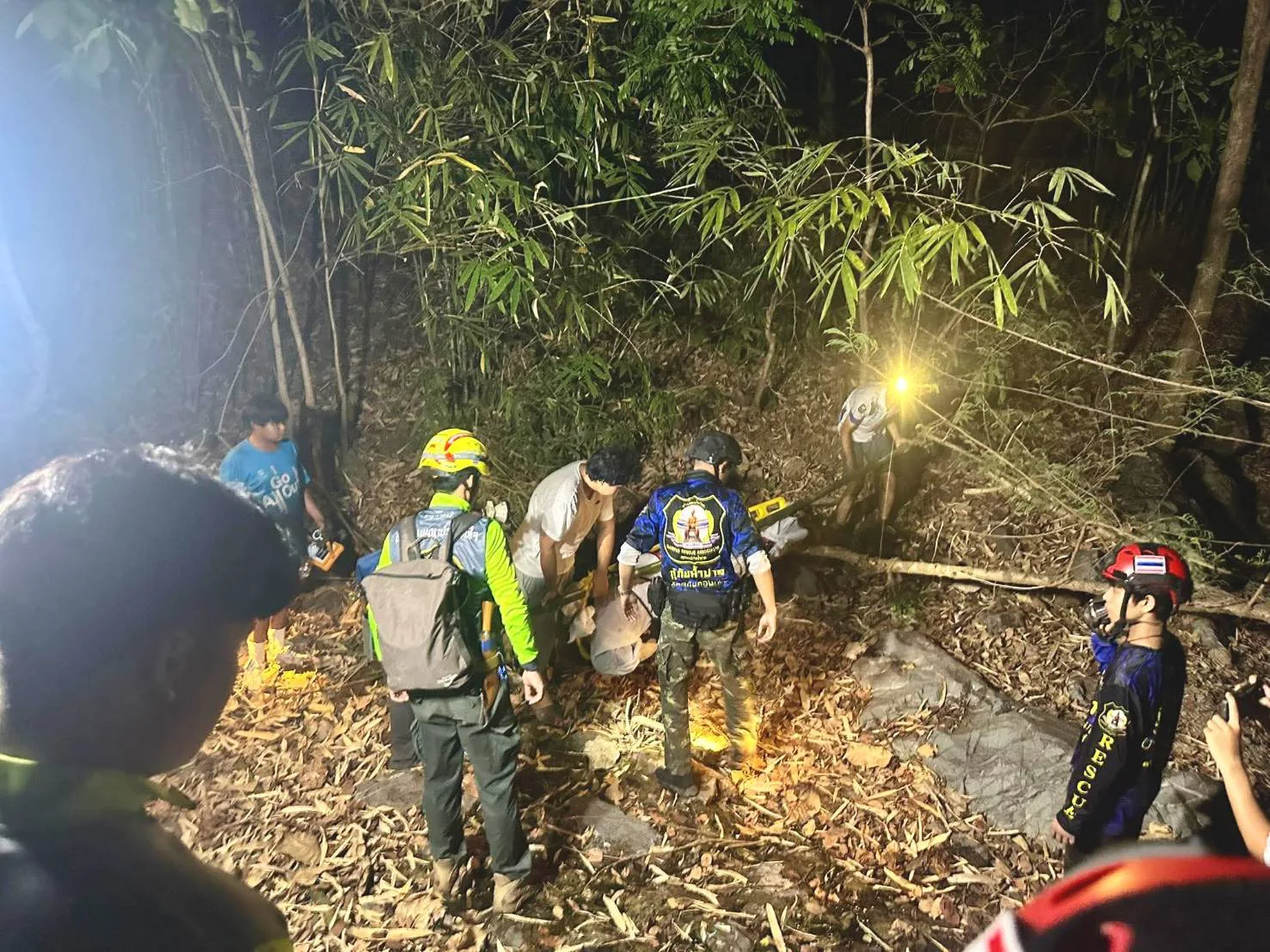 กู้ภัยน้ำปาดร่วมกับสมาคมพยาบาลร่วมใจกู้ภัยฟากท่าพบร่างผู้เสียชีวิตอยู่บนต้นไม้ในป่าลึก