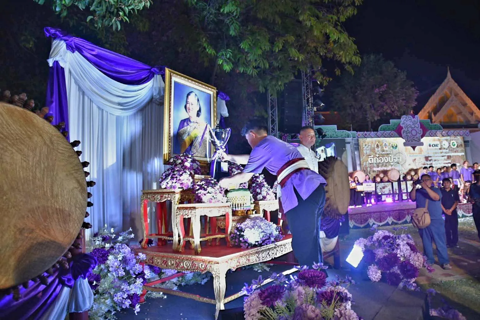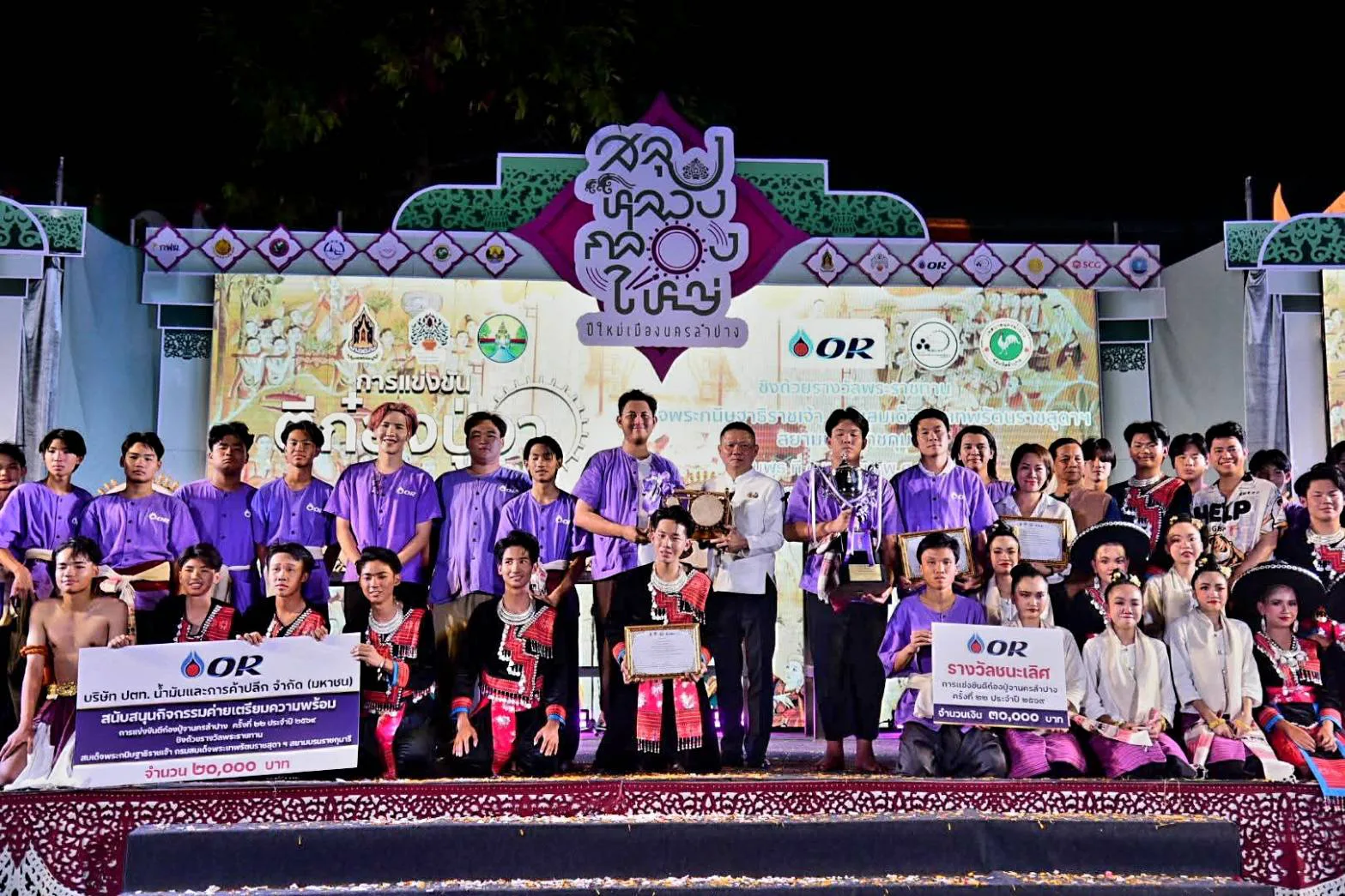 เมื่อวันที่ 8 เมษายน 2569 เวลา 21.00 น. ที่ผ่านมา นายวิวัฒน์ อินทร์ไทยวงศ์ ผู้ว่าราชการจังหวัดลำปาง เป็นประธานในพิธีมอบรางวัลการแข่งขันตีก๋องปู่จานครลำปาง ชิงถ้วยรางวัลพระราชทานฯ โดยมี นายพัชระ สิมะเสถียร, นายรณรงค์ เทพรักษ์ และนายกฤษณะ พินิจ รองผู้ว่าราชการจังหวัดลำปาง พร้อมด้วยหัวหน้าส่วนราชการ เข้าร่วมในพิธีอย่างพร้อมเพรียง